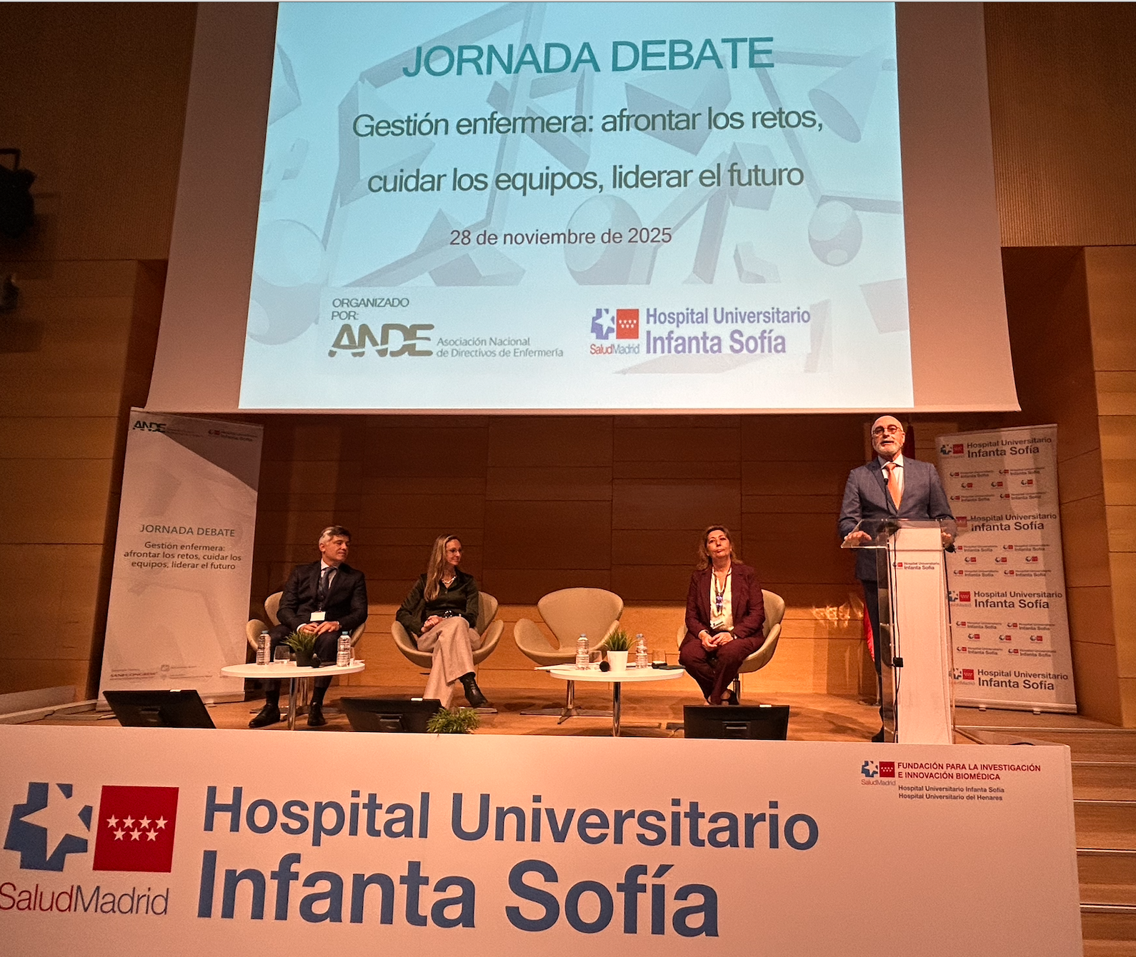 Gestión enfermera: afrontar retos, cuidar equipos y liderar futuro lema de la Jornada Debate 2025 ANDE y el Hospital Universitario Infanta Sofía.